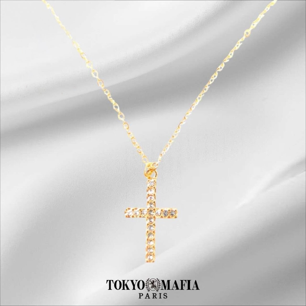 GOLD CRYSTAL JEWELRY CROSS NECKLACE