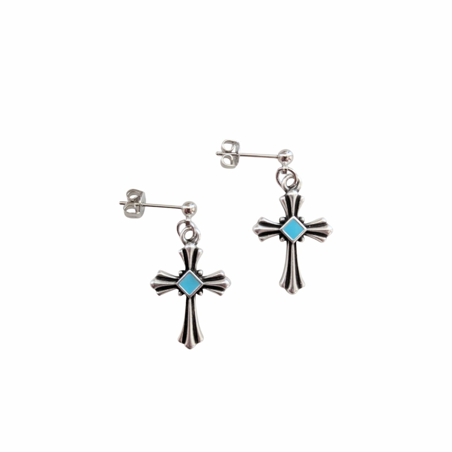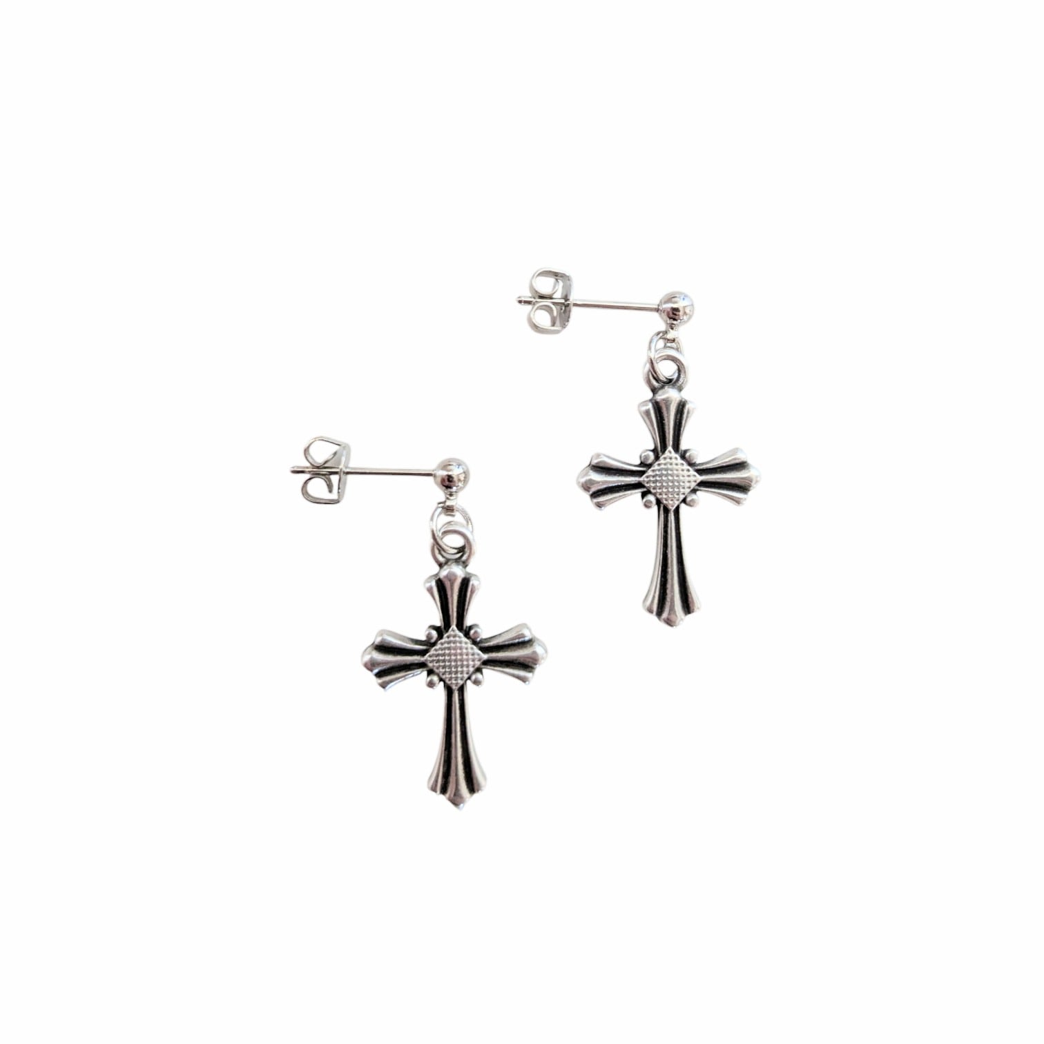 現代的なエレガンスを融合させた「クレセント・クロス」スタッドピアス。