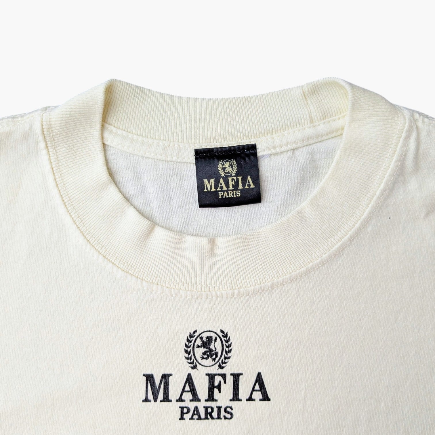 襟下の「MAFIA PARIS」のレタリングが胸元から高級感なアクセントをプラス。